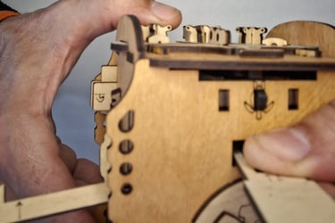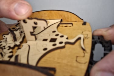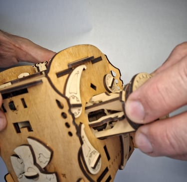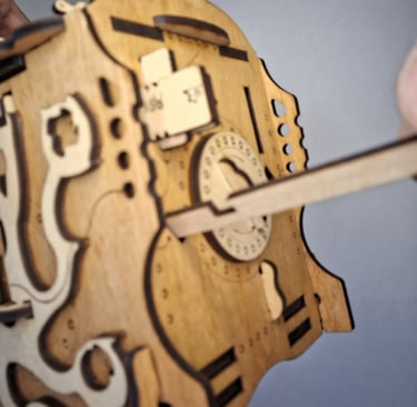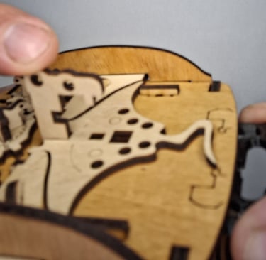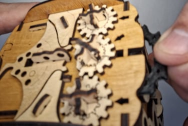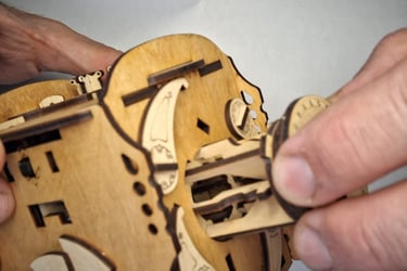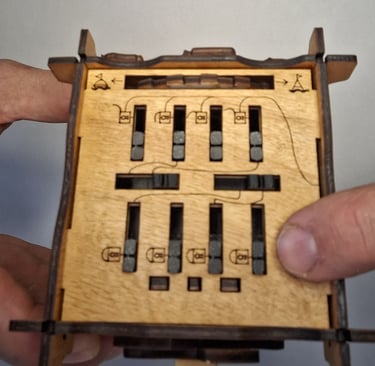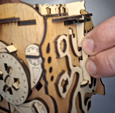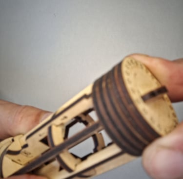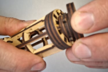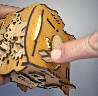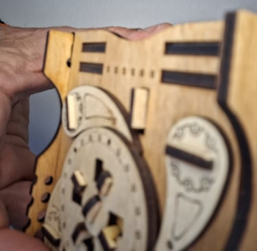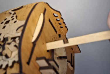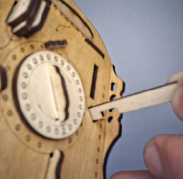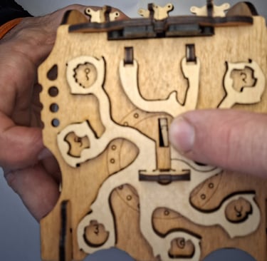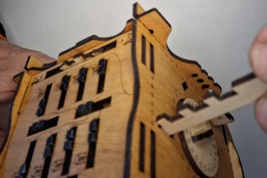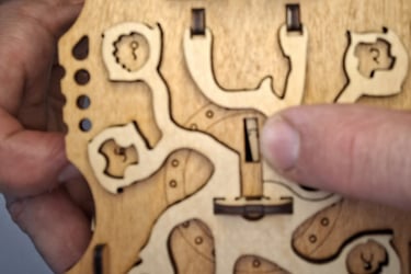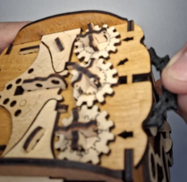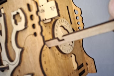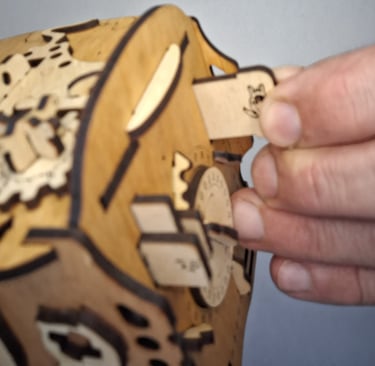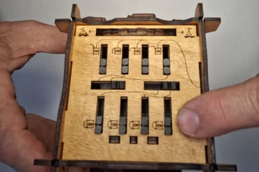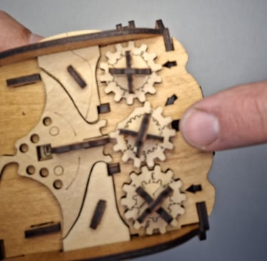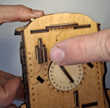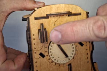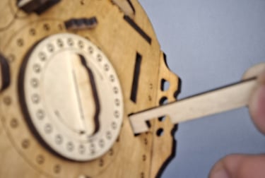 Rotar las cuatro trabas hasta que queden bien insertadas en las muescas de la tapa del Criptex. Es importante que ninguna traba bloquee las salidas de las llaves.