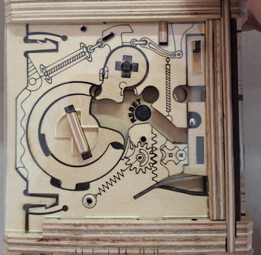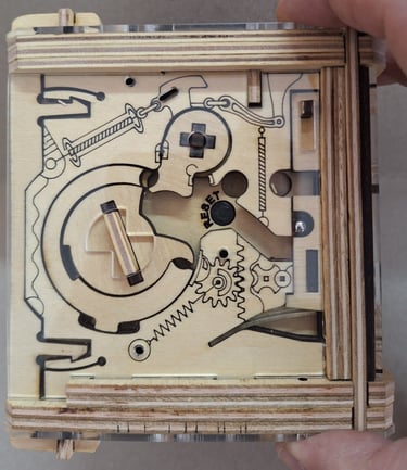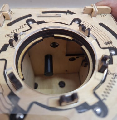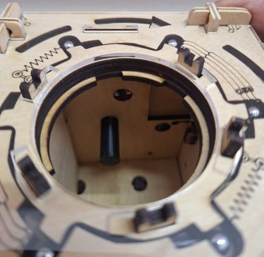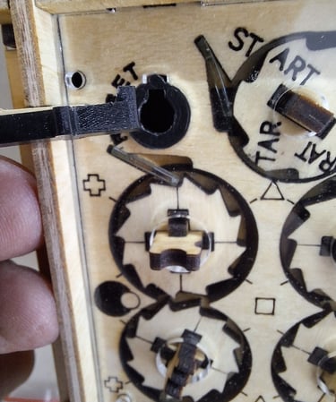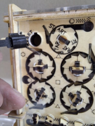 Ahora vamos a retirar ese "tapón" desde el interior de la caja, lo que nos permitirá extraer la bolita libre de la cara que acabamos de configurar. Una vez que tengamos la bolita libre fuera de la caja, volvemos a colocar el tapón.