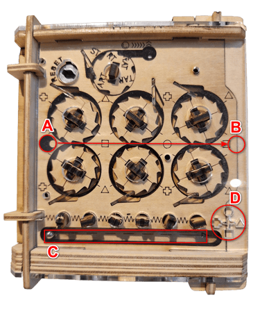 3_ esas 6 "caritas" se repiten en las "palanquitas" ubicadas arriba de la ranura "C"